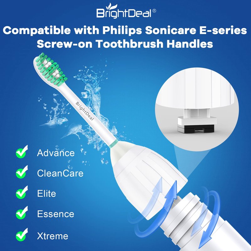 - GREAT COMPATIBILITY - BrightDeal replacement toothbrush heads compatible with Philips Sonicare Advance, CleanCare, Elite, Essence and Xtreme E series electric screw-on sonic toothbrush