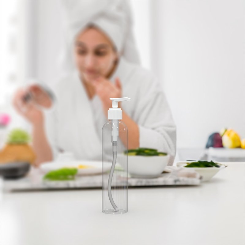 Lotion pump dispenser bottles, empty 8 ounce. Crystal Clear PET Plastic, BPA FREE - Great for Shampoo, Liquid Castile Soap, Body Wash, Shower Gel, Massage Oil, Hand Lotion, Self Tanning. Refillable and Reusable. Have a comfortable size and is easy to hold. Just fill and use!