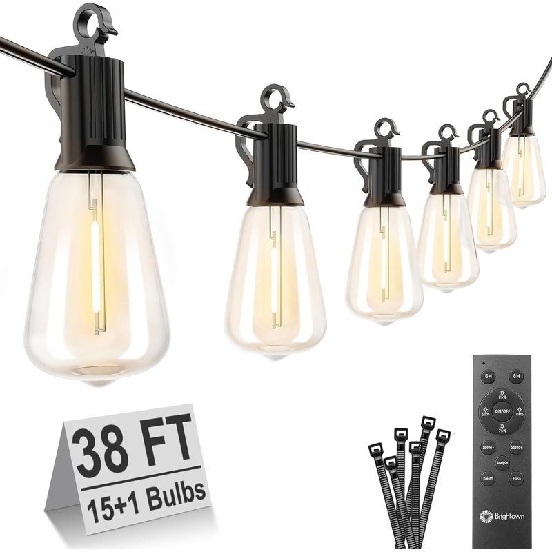 Brightown Outdoor String Lights with Remote, 38FT LED Patio Lights with 16 Shatterproof ST38 LED Bulbs, Waterproof Outside Hanging Lights for Backyard Garden Porch Party Decor, 2700K