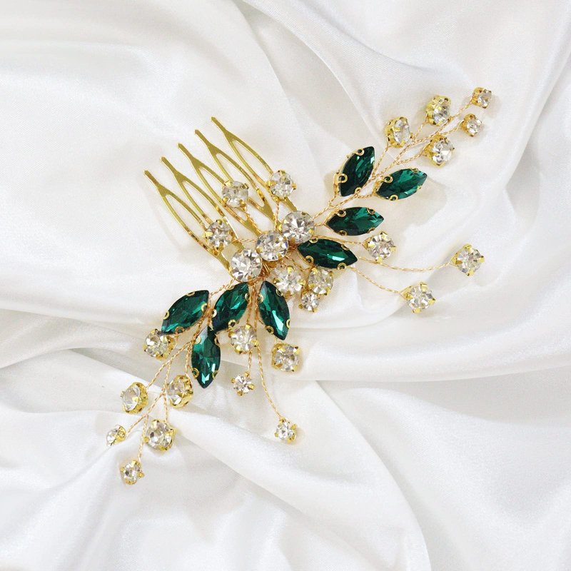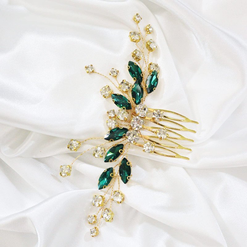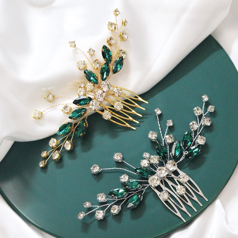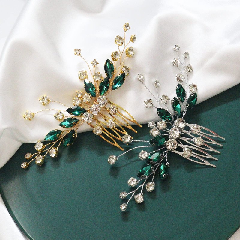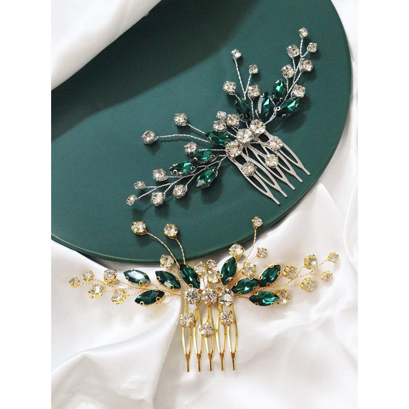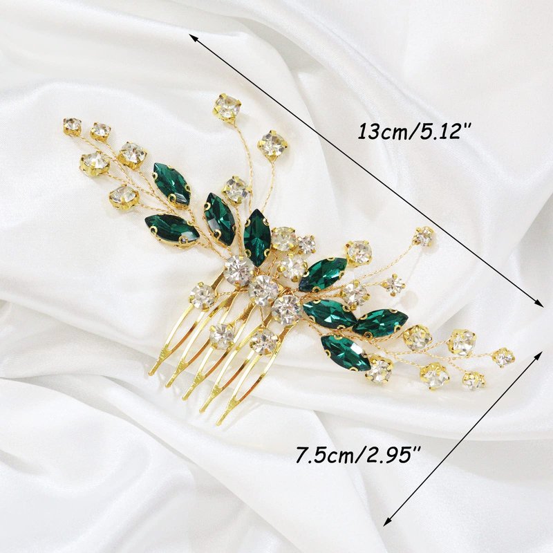 - 【Size and Color】Bridal hair comb Size:5.12''×2.95''(13×7.5cm), Gold Green/Silver Green/Blue/Gold Red/Silver Red(1PCS). Soft alloy material, whether long, short or curly, can be adjusted to your needs