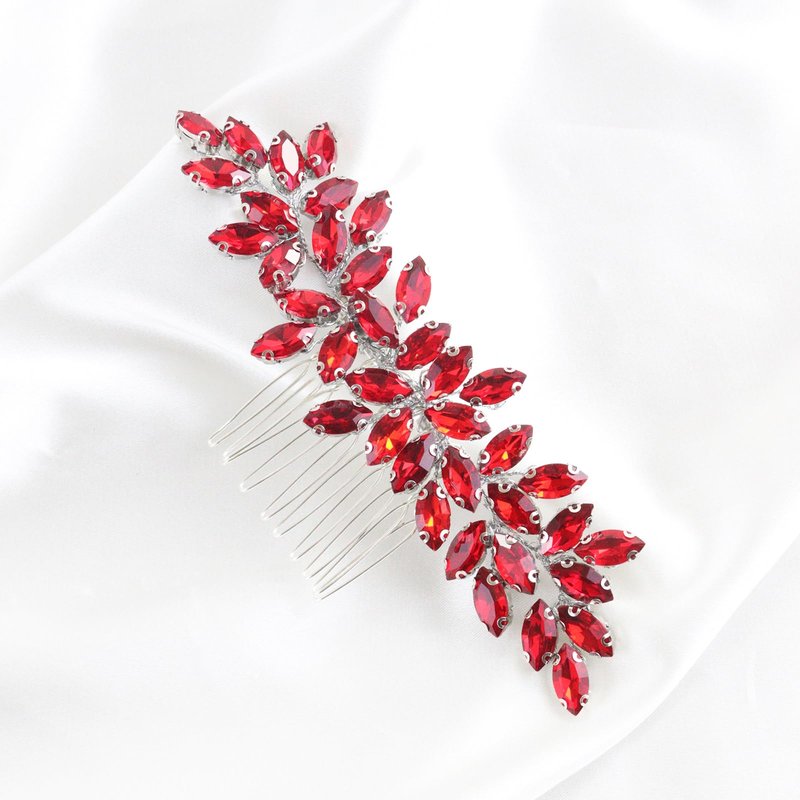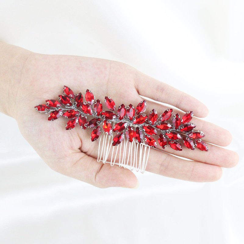 Brihasory Luxurious Wedding Hair Comb Full Rhinestones Bride Hair Accessories for Party Prom Bridal Side Hair Combs for Women Bride Girls Hair Decoration(Red)