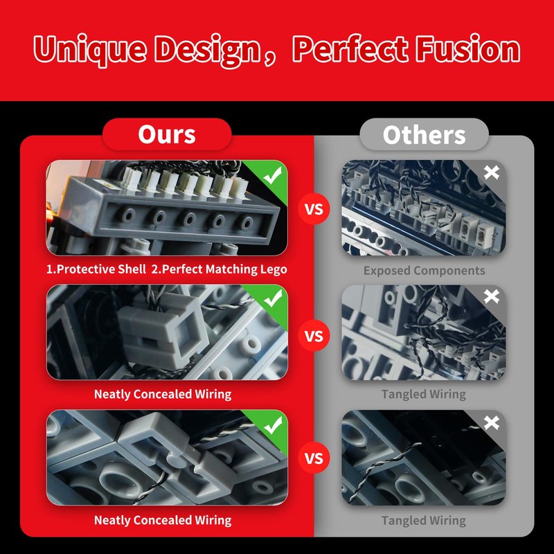 - Brilliant Crafts: Featuring new compatible accessories with shells and cable organizers, our kit ensures tidy wiring, seamlessly integrating with your LEGO set for a safer and more beautiful display!
