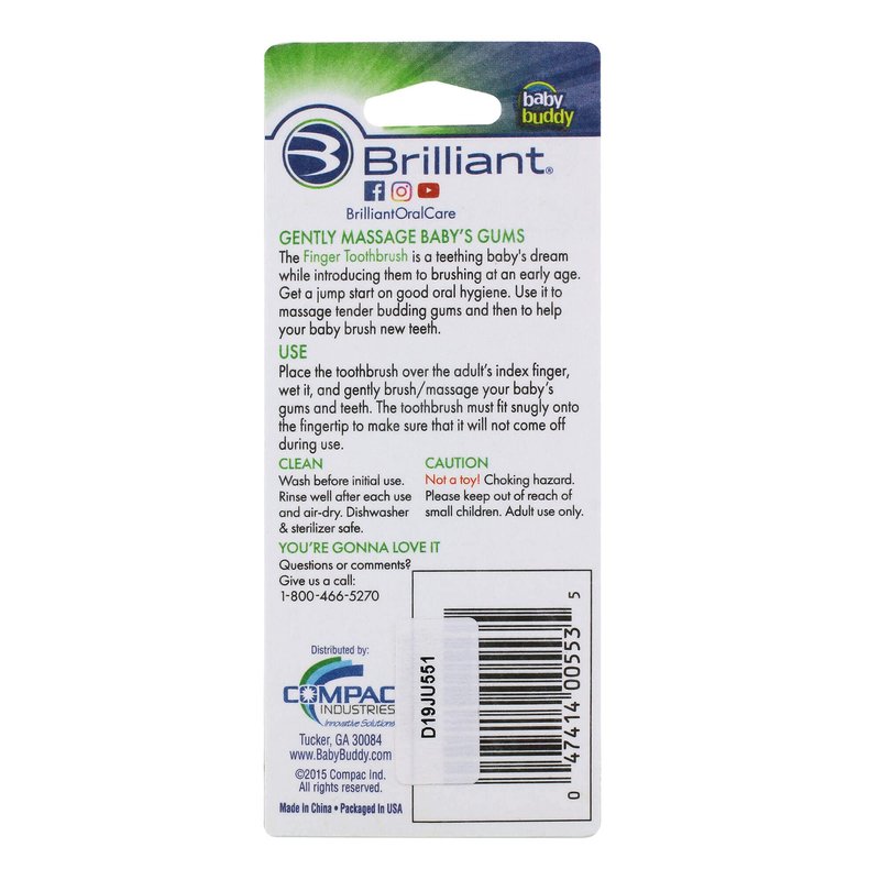 - 100% silicone BPA, lead, and phthalate-free; Wash before first use; then rinse thoroughly after each use and let air dry; Baby Finger Toothbrush is dishwasher and sterilizer safe, oral health needs