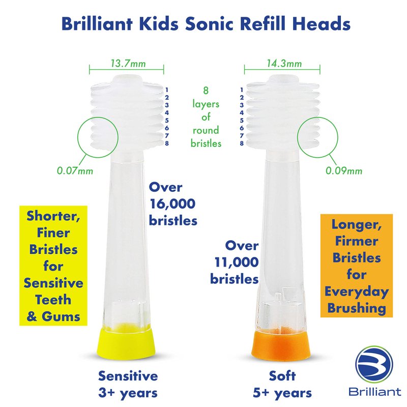 - See the Brilliant Difference: Shorter, finer, more sensitive bristles for ages 3 years old and up; Brilliant toothbrushes are unique because they have a round brush head; cleaning all over the mouth
