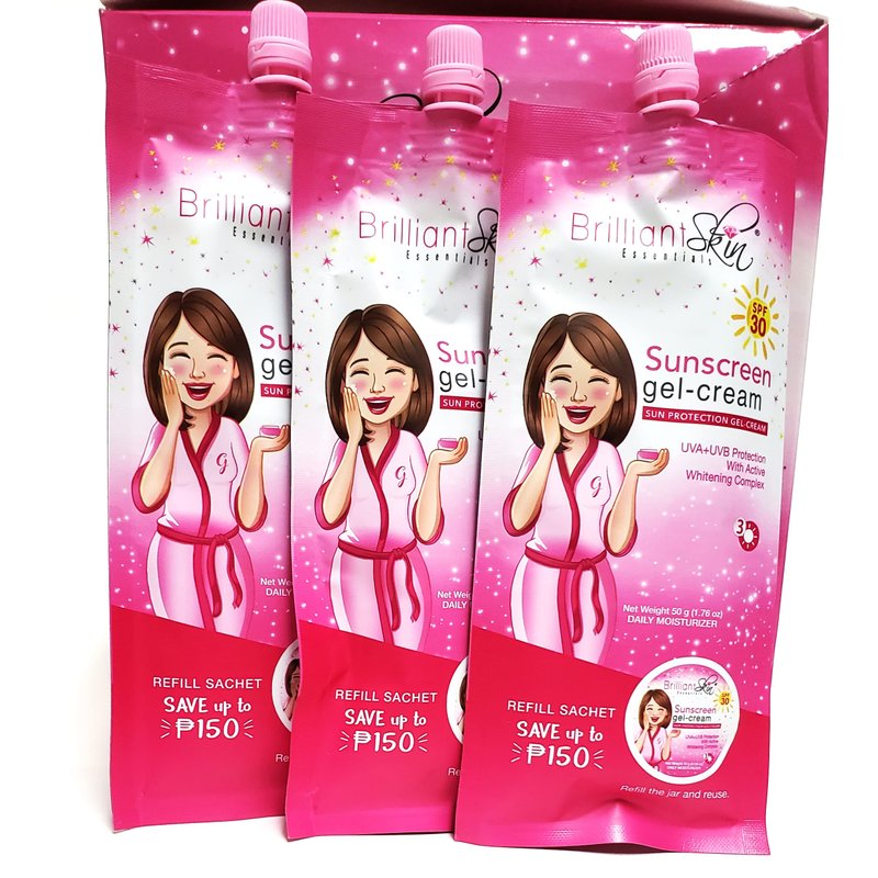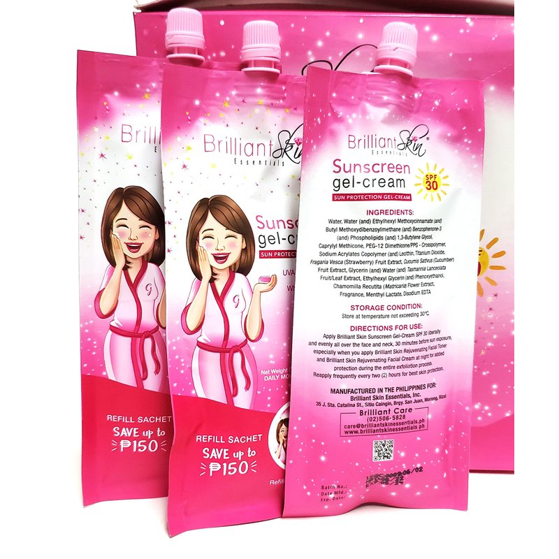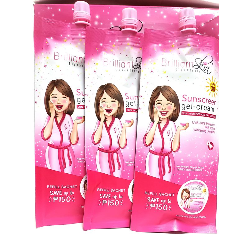 - Brilliant Skin Sunscreen Ideal for Moisturizer , Hydrating and Anti Aging Skin , Cream Moisturizer Formula Protect from the sun’s harmful rays all year long , helps protect against the signs of sun damage Your skin naturally peels and smooth on using this Light weighted gel sunscreen protect from environmental damage sun exposure