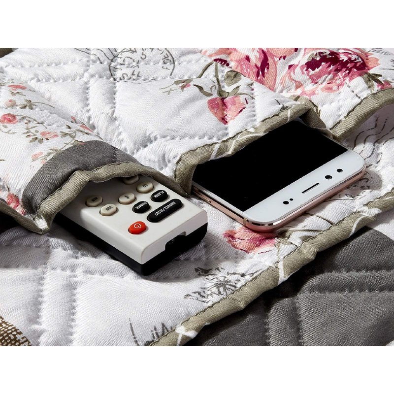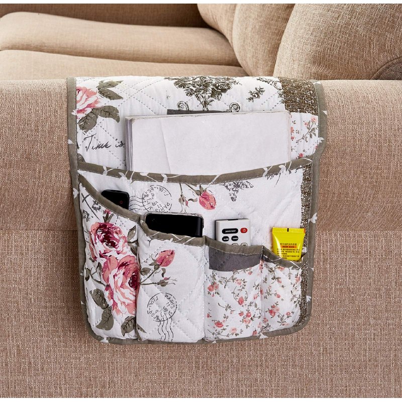 - ORGANIZER WITH UNIQUE DESIGN: Rose and Toile Patchwork patterns, with double diamond quilting, elegant, timeless and unique. Keep your accessories organized and protect your couch armrest against mess. Pets friendly. Made to enhance decor.