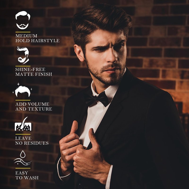 - MEDIUM HOLD FOR PLIABLE DESIGN: With its sweat-proof and shine-free formula, our hair clay delivers a medium hold matte finish to you that last up to 12 hours, which you can shape your hair effortlessly for any textured look even during humidity weather condition. Moreover, its flake-free function would not leave any residues