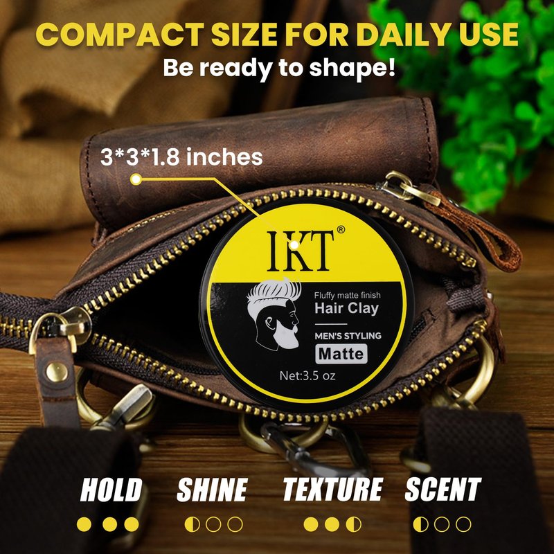 - SAMLL BOX SATISFY STYLISH MEN FASHION: Our hair styling clay men is design as a small round box size, which can be placed into your backpack, gym bag or briefcase. It is designed especially for men's hair needs and more suitable for short-medium hair stylish men