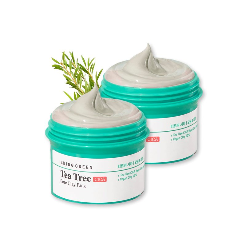 BRING GREEN Tea Tree Cica Pore Clay Pack Double Set| Vegan Deep Pore Cleansing Clay Mask, for Pore Purifying, Contains Cica & Tea tree for Soothing & Relieving Stressed Skin