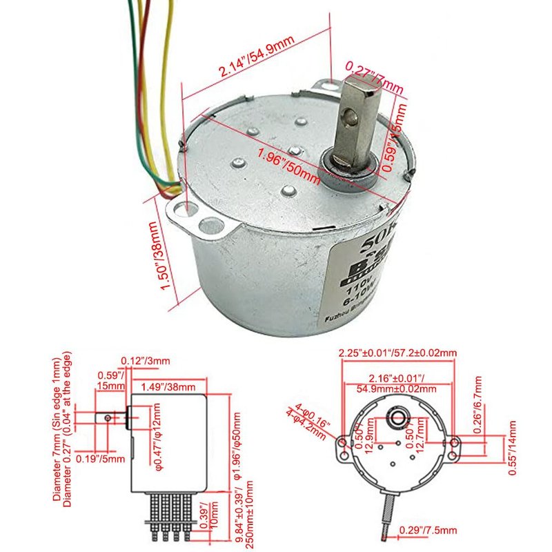 Voltage: 110V AC, Speed: 10rpm, Power: 6-10W, Size: 50*38mm
