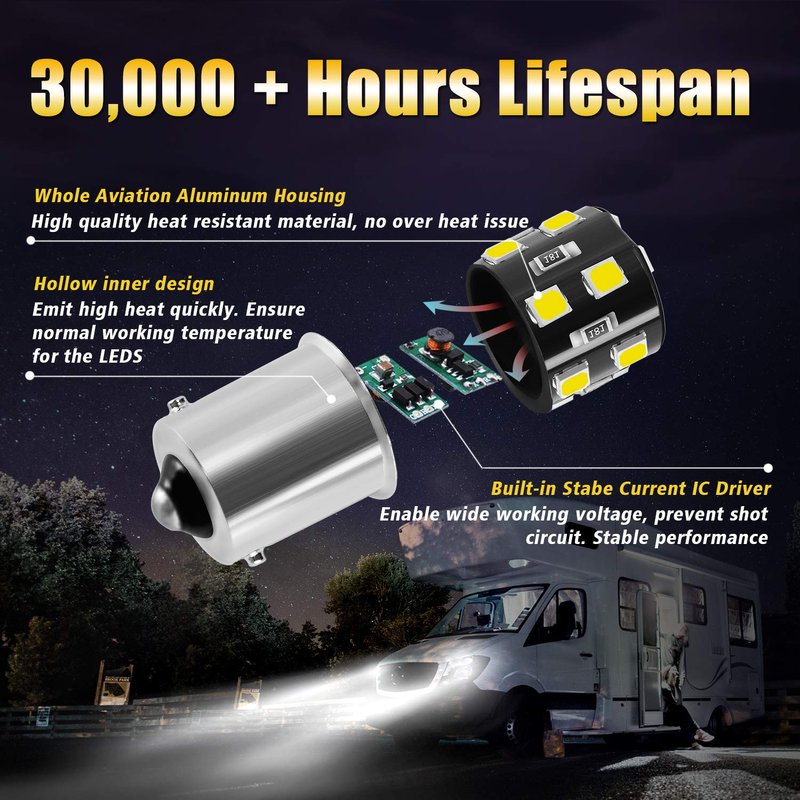 - ★Applications: Great for RV camper trailer motorhome, 5th Wheel boat interior lights, Tail Lights, Brake Lights, Reverse Lights, Side Marker Lights, Rear Light, Stop Lamp, Backup Lights and Center high mount stop lights(3rd brake lights), Turn signal lights.