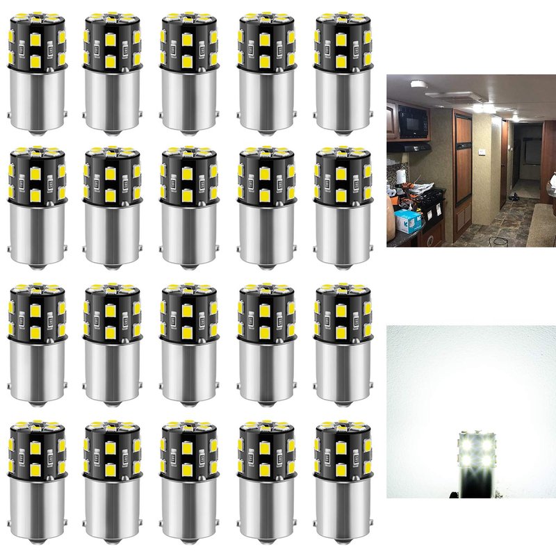 BRISHINE 20PCS 1141 1156 Interior LED Light Bulbs for RV, Super Bright 18-SMD 6000K Xenon White 1073 1003 7506 BA15S LED Bulbs Replacement for Camper Trailer Boat Indoor Lights(12V DC)