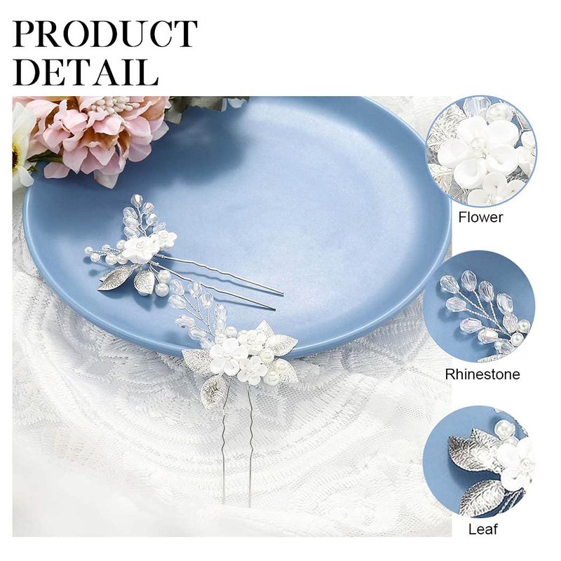 - Wedding hair pin is made of flowers, leaves, pearls, beads and alloy, pretty and eye catching outfit.