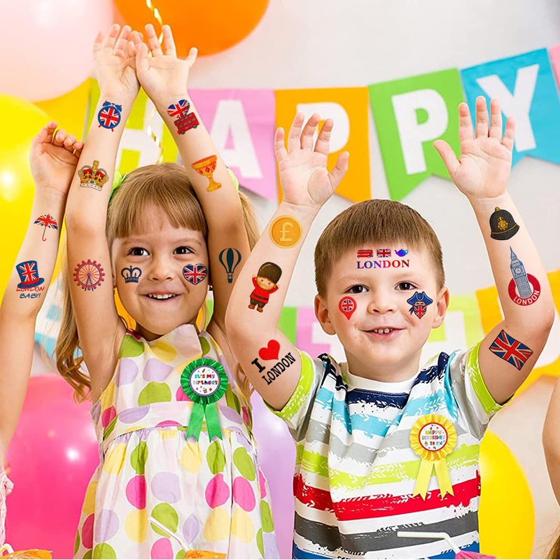 - Style: British Temporary Tattoos Sticker; Birthday Party Supplies; Birthday Decorations; Party Favors;