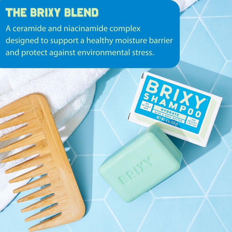 - MOISTURE BARRIER SUPPORT - This moisturizing shampoo bar for dry hair includes the BRIXY Blend - a ceramide and niacinamide complex designed to support the lipid layer that helps seal in moisture and protect against enironmental stress that causes irritation and moisture loss.