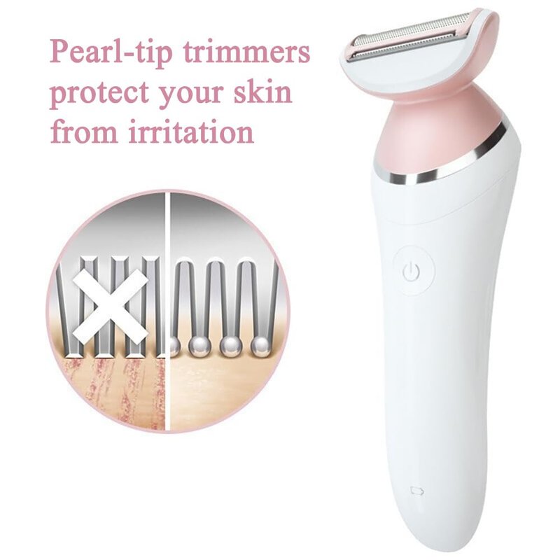 The rounded pearl-tip trimmers in front of and behind the shaving foil ensure the shaver glides smoothly to prevent irritation.