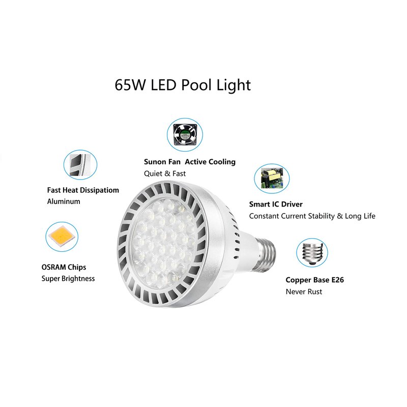 Led Pool Light 120V 65W Daylight White 6000K Swimming Pool 6000LM Pool Light Bulb Replacement for Most Pentair Hayward Light Fixtures