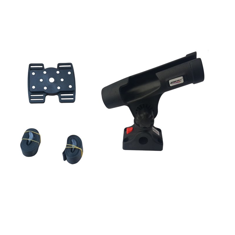 Brocraft Float Tube Fly Rod Holder will rotate and lock into any desired position so you can have your rod/reel combo positioned the way you like.