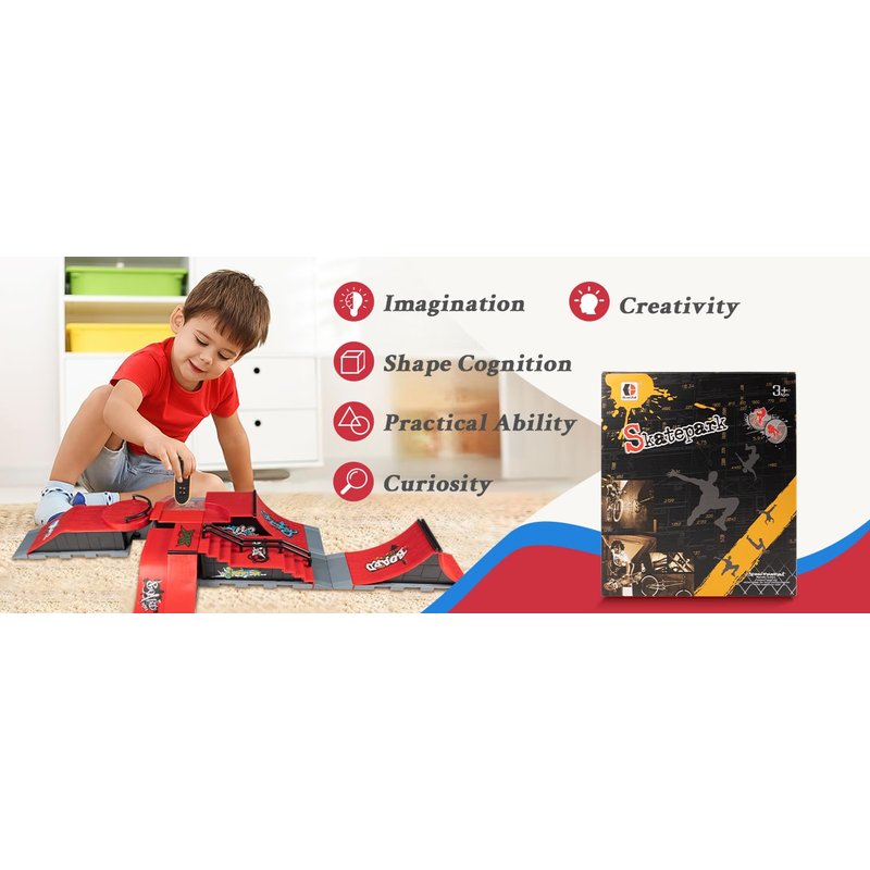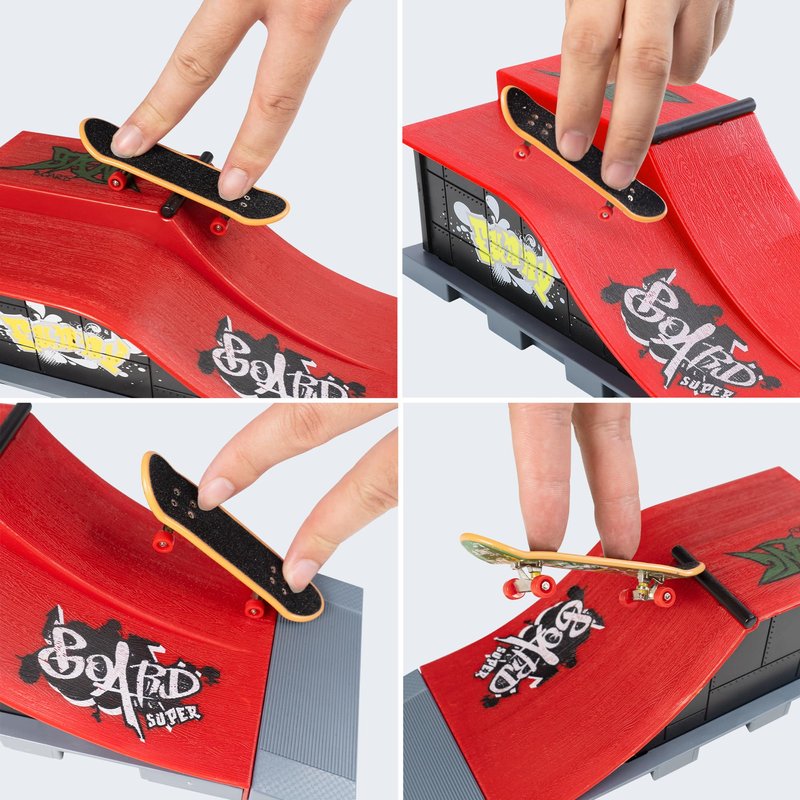 - -[Finger Skateboard Ramp Set]-The deck skatepark is ergonomically designed to fit the hands of children and adults. fingerboards provides hours of fun while cutting some shapes of the ramp. The finger skateboard allows you to enjoy the fun of the game while developing good imagination, creativity and finger coordination.
