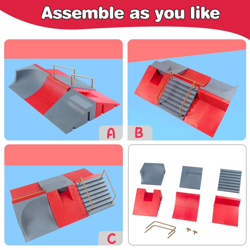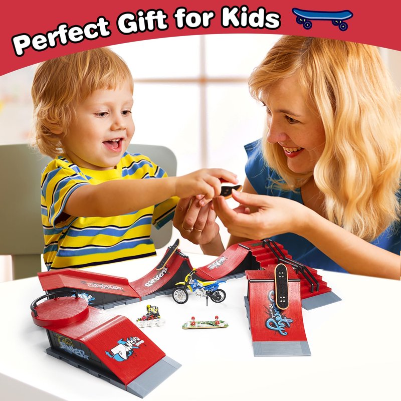 - -[Finger Skateboard Ramp Set]-The deck skatepark is ergonomically designed to fit the hands of children and adults. fingerboards provides hours of fun while cutting some shapes of the ramp. The finger skateboard allows you to enjoy the fun of the game while developing good imagination, creativity and finger coordination.