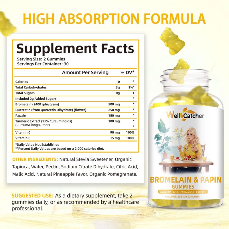 - BOOST IMMUNITY: Wellcatcher papain and bromelain enzyme gummies provide daily support for your overall health and vitality that can help your body adapt to environmental changes
