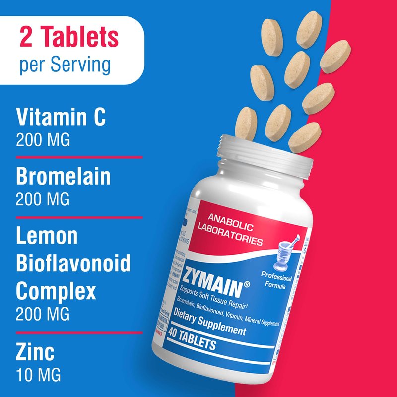- This Zymain supplement from Anabolic Laboratories is designed to aid healthy tissue that was taxed by overexertion. It does this by supporting the body's natural anti swelling response.
