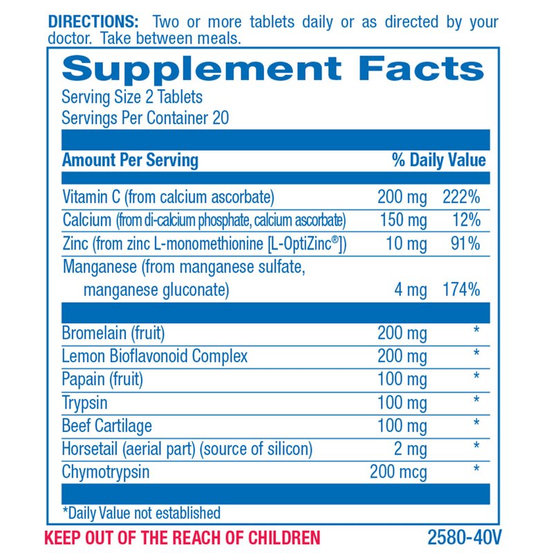 Bromelain Supplement for Soft Tissue Injuries - 40 Tablets - Vitamin C, Zinc, Citrus Bioflavonoids - Soft Tissue Support for Acute Injury Recovery - Zymain Proteolytic Enzymes, Minerals, Vitamins