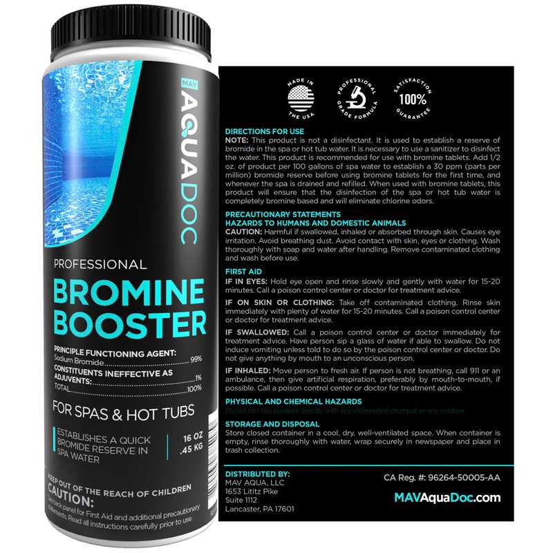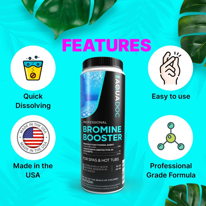 - Establish immediate bromide reserve - Super fast-acting bromine booster and spa shock helps you establish immediate sodium bromide levels in your hot tub to reduce chloramines and bromamines.
