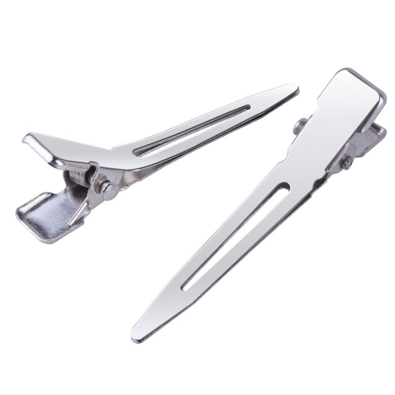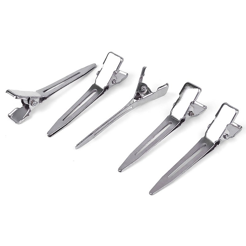 BronaGrand 100pcs 4.5cm Silver Single Prong Curl Clips Silver Section Clips Metal Alligator Hair Pins Clips Clothing for Hair Extensions