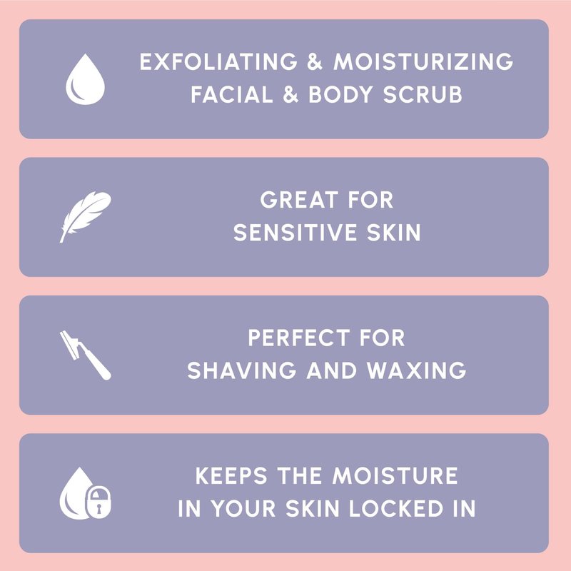 - NOURISHING MOISTURIZER: While certain exfoliating scrubs or dry brushes can leave your skin dry and dull, Brown Sugar Facial Scrub, Body Scrub, and Foot Scrub is actually moisturizing. Brown Sugar helps to keep the moisture in your skin locked in. It’s perfect for use before or after waxing and as a foot scrub.