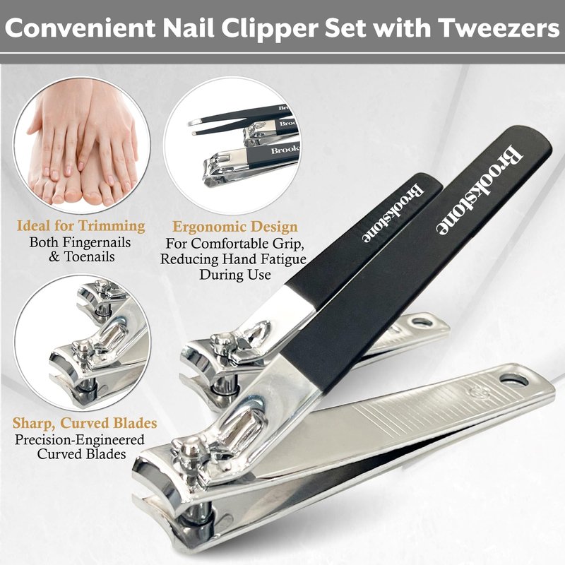 Introducing the Brookstone Premium Nail Clipper Set, designed for the discerning gentleman and teen boys who value precision grooming. This meticulously crafted set includes two high-quality nail clippers: one for fingernails and one for toenails, ensuring you have the perfect tool for every need.