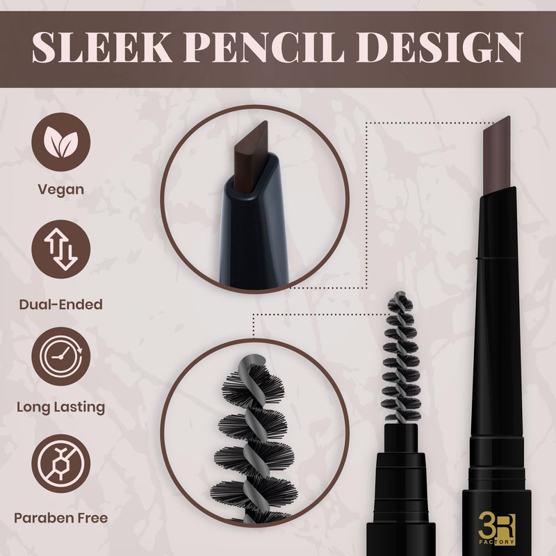 - Define Your Brow: Natural or dramatic, whatever your signature eyelook or beard styles, 3R Factory highly pigmented eyebrow pencil will naturally boost and enhance your overall look in your desired shape and style. A triangular-tipped, retractable pencil with Brush. Define, Fill and Detail Brow for women and create a Full and stylist beard for men.