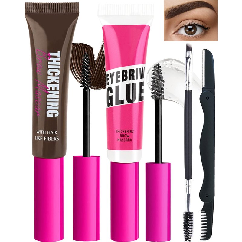 Brow Gel Kit-Espresso Thickening Tinted Eyebrow Mascara Gel & Clear Setting Brow Glue, Brow Lift Fast Sculpt, Long Lasting Eye Makeup for Women, Light Medium Dark Brown With Brow Tool-Set 07