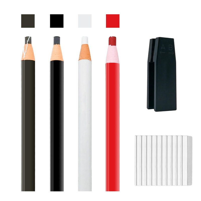 Brow Pencil Kit Waterproof Eyebrows Pencil Tattoo Makeup And Microblading Supplies Permanent Peel-off Eye Brow Pen Set with 4 Colors(Black,Dark Brown,White,Red)