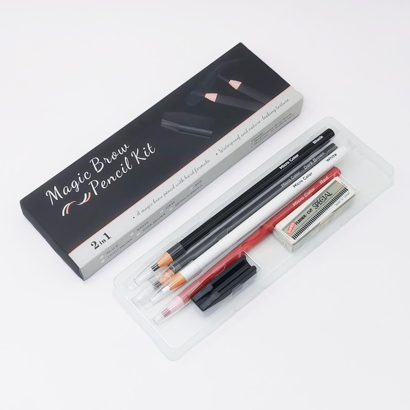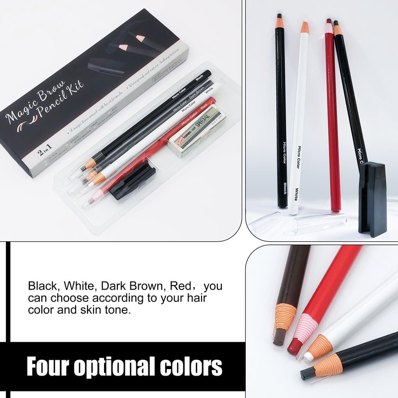 - 【Multiple Colour】Magic Brow Pencil Kit offers a variety of colors to choose from: Black, White, Dark Brown, Red. You can choose according to your hair color and skin tone. With a variety of eyebrow trimming tools to help you create your own charming eyebrow shape.