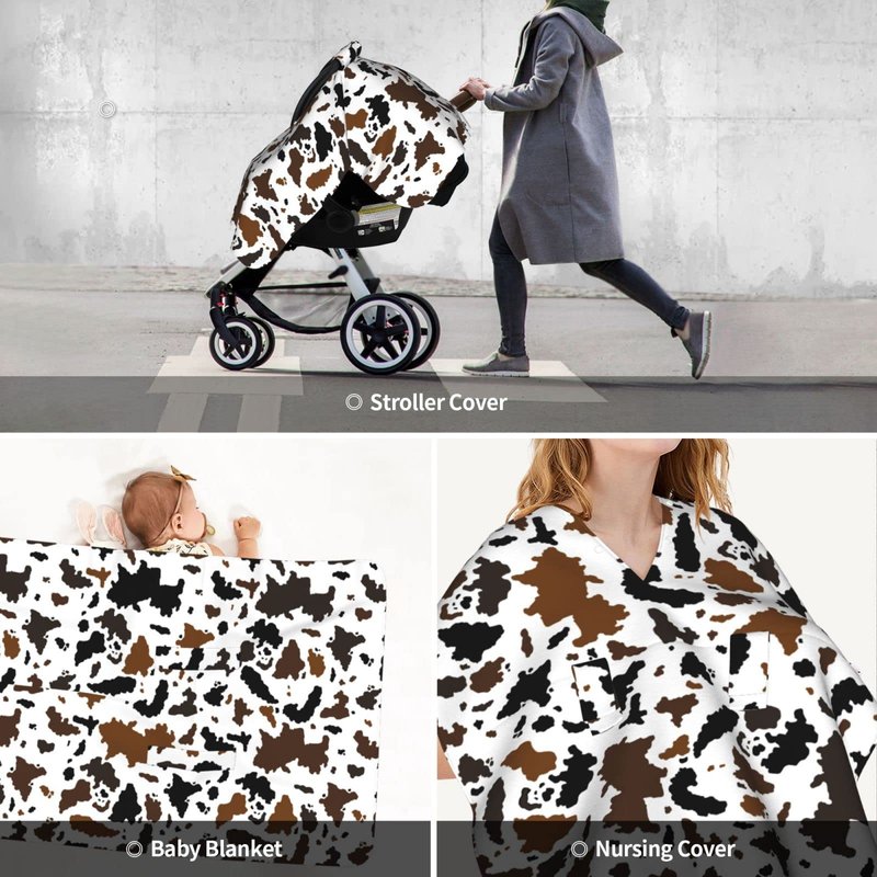 Brown Black Cow Skin Baby Car Seat Canopy Cover Multi Use Nursing Cover for Newborn Car Seat Canopy Mom Nursing Breastfeeding Covers Newborn Shower Gift