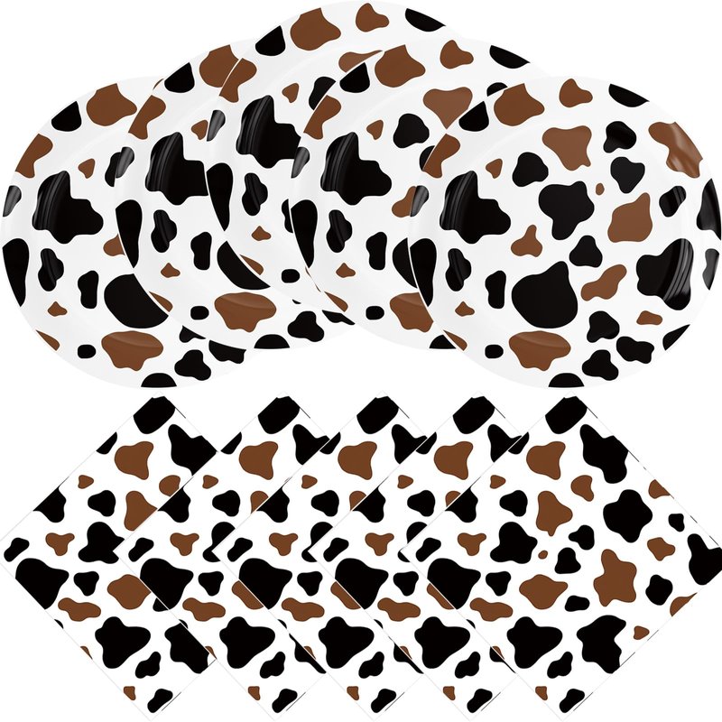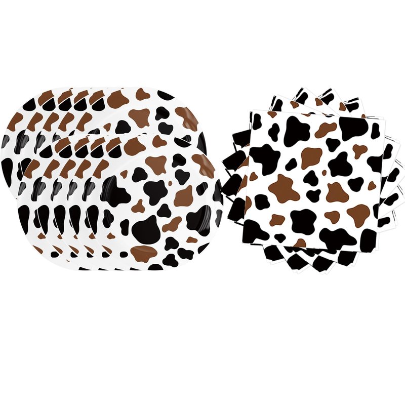 Brown Cow Print Birthday Party Supplies, Include 20 Brown Cow Print Plates and 20 Brown Cow Print Napkins, for Brown Cow Print Theme Birthday Party Decorations