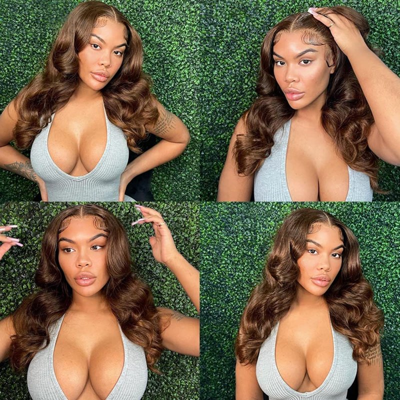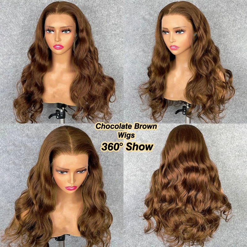 - Brown Body Wave Lace Front Wig Material: 100% Unprocessed Virgin Human Hair No Mixed Hair; No Shedding and Tangle-free; Soft and Natural; Healthy and Vibrant; Comfortable Against Skin; Can be Straightened Colored and Restyled