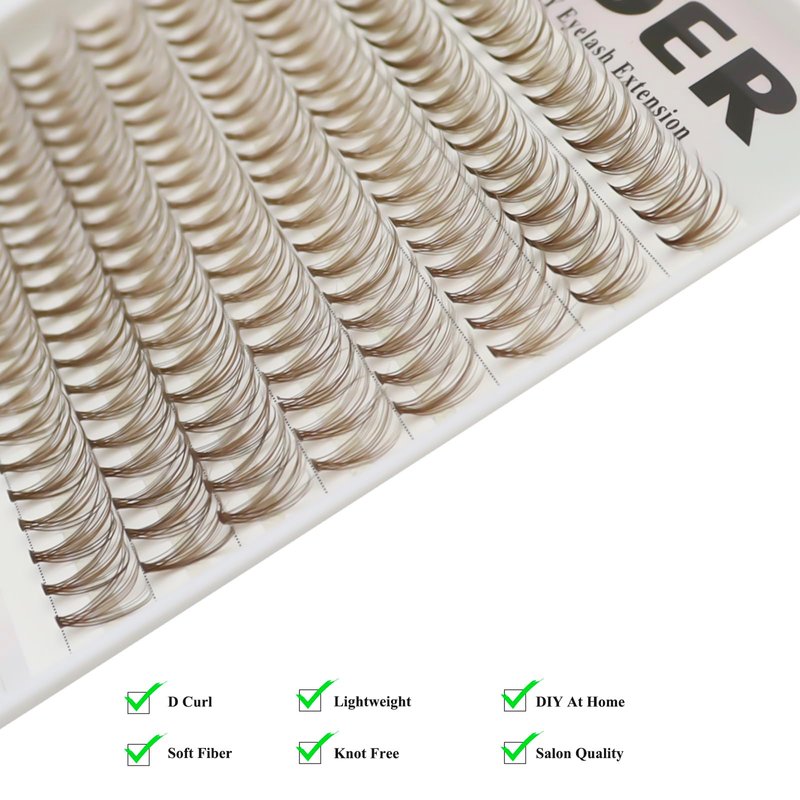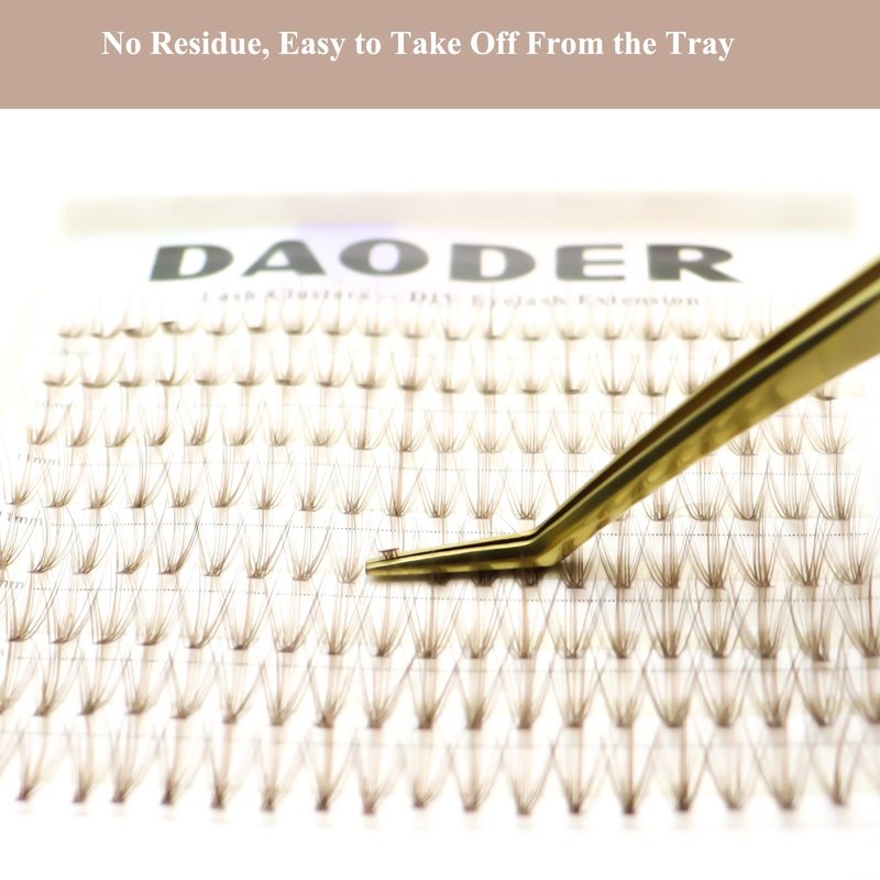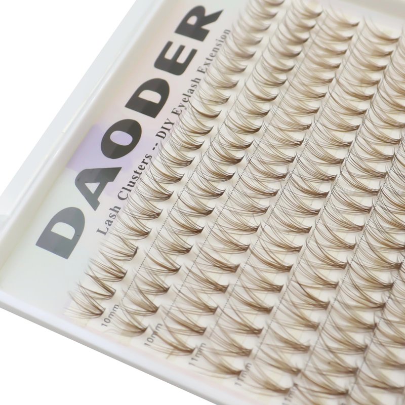 - SHORT LASH CLUSTERS NATURAL LOOK:DAODER lash extension adopt premium synthetic fiber, super Soft and super lightweight, vegan, knot-free, chocolate brown /Caramel color, will give you such soft and natural look. The cluster lashes come in pretty D curl, look like lash extensions.