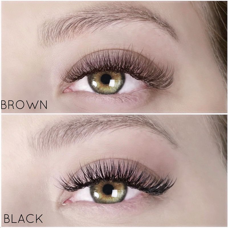 - BROWN EYELASH EXTENSION: General speaking, brown lashes can give an incredibly natural look to your lash set. The brown extensions especially would suit those who have blonde or red colored hair and eyebrows to create natural looking. Brown lash extensions also flatter every eye color, blue eyes are intensified, hazel eyes look golden, green eyes really pop against brown lashes, brown eyes look brighter.