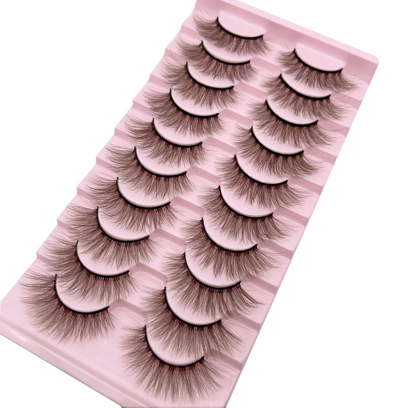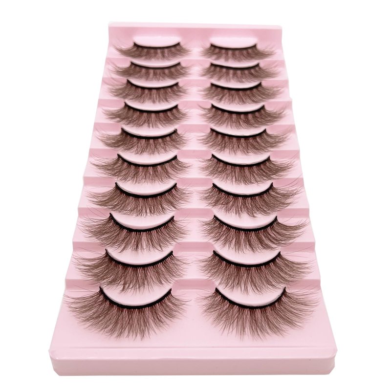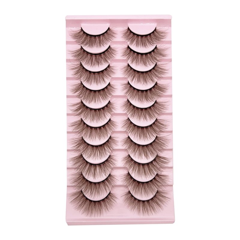 - [ 10 PAIRS BROWN LAHSES NATURAL LOOK ] : Soft premium qualityimported fiber, ultra-light, reusable, fluffy. These wispy brown lashes dyed with natural dyes are not-allergic and cruelty-free ;