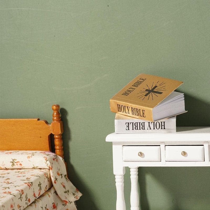 Bring a touch of literary charm to your dollhouse with this exquisite Brown Mini Bible Pocket Book. Meticulously crafted at a 1/12 scale, this miniature book is a delightful addition to any dollhouse bedroom, library, or bookshelf display. Imagine your dolls curling up with this tiny tome, immersing themselves in a world of imagination and storytelling. Crafted with attention to detail, this miniature book captures the essence of a beloved classic, making it a treasured accessory for collectors and enthusiasts alike. Whether you're creating a cozy reading nook or adding depth to your dollhouse decor, this Brown Mini Bible Pocket Book is a must-have for any discerning miniaturist. Elevate your dollhouse experience with this enchanting piece of miniature literature.