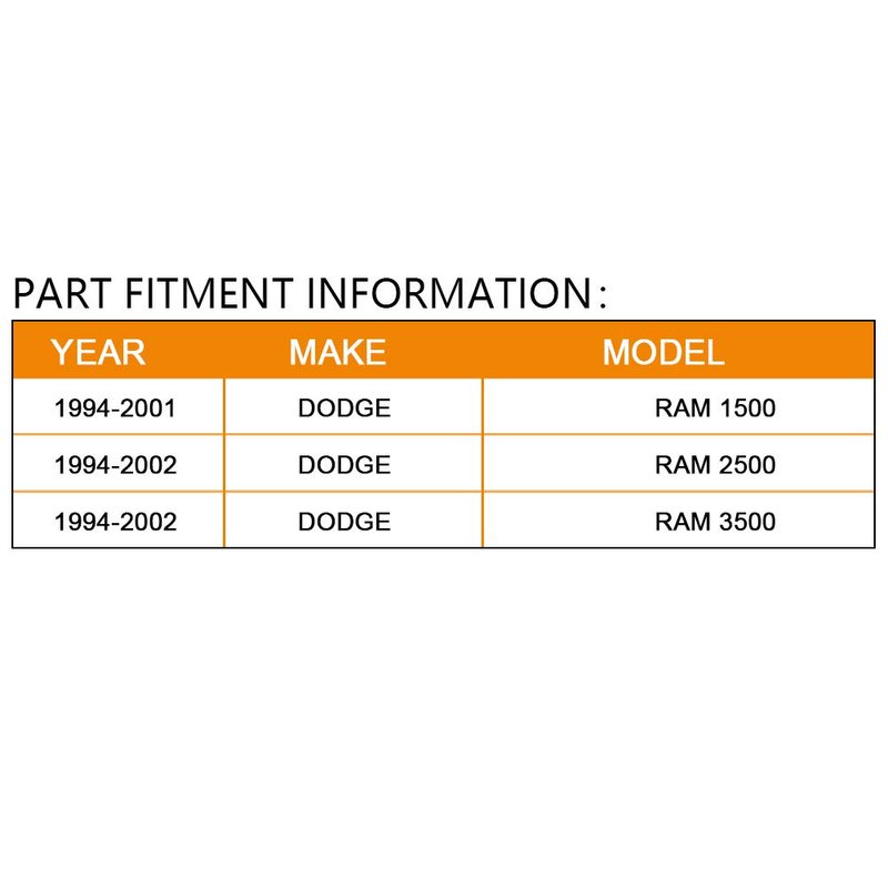 - Fitment vehicle model: 1994-2001 for Dodge RAM 1500; 1994-2002 for Dodge RAM 2500; 1994-2002 for Dodge RAM 3500