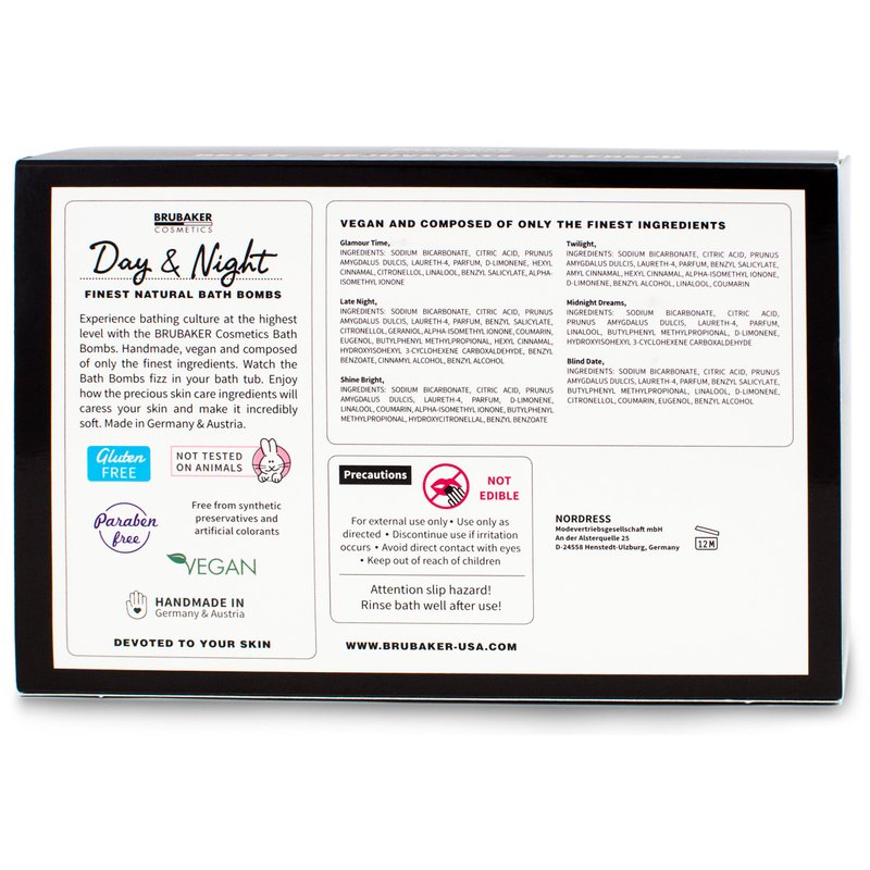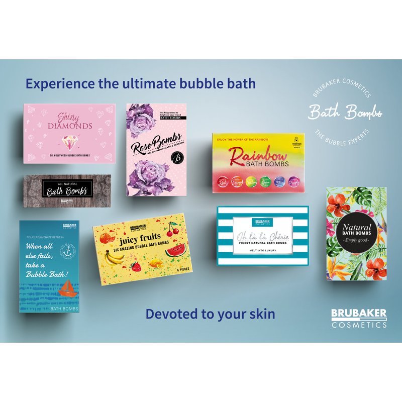 Experience bathing culture at the highest level with the BRUBAKER Cosmetics Bath Bombs. Handmade, vegan and composed of only the finest ingredients. Watch the Bath Bombs fizz in your bath tub. Enjoy how the precious skin care ingredients will caress your skin and make it incredibly soft.