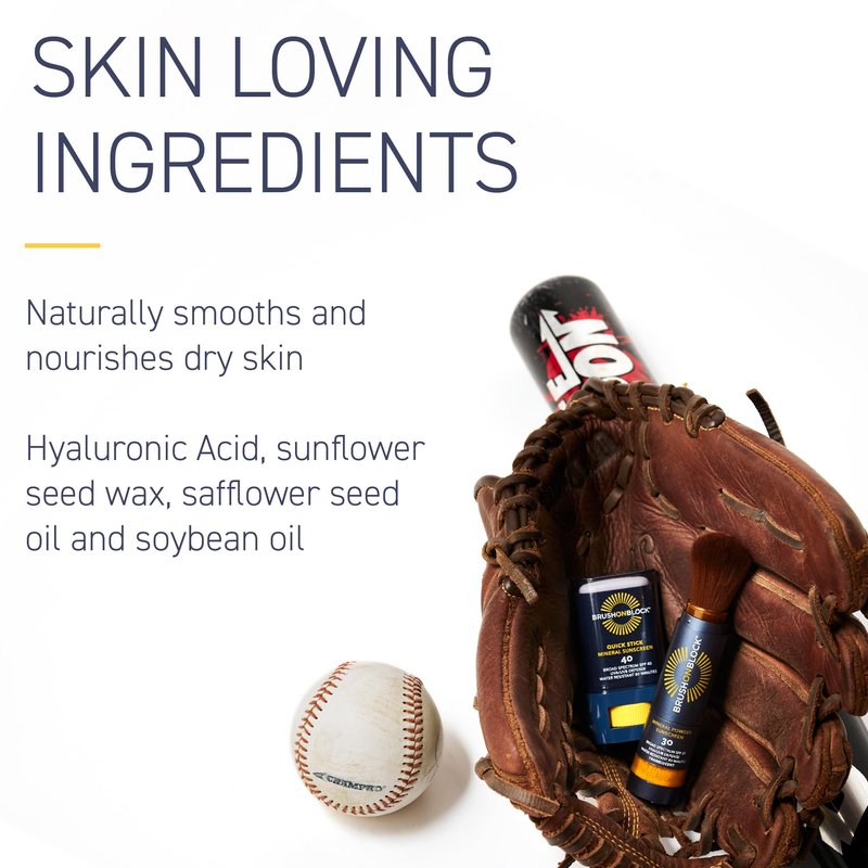 - Broad Spectrum & SPF 40: Our mineral sunscreen stick glides on easily & moisturizes the skin with ingredients like hyaluronic acid, sunflower seed wax, safflower seed oil & soybean oil