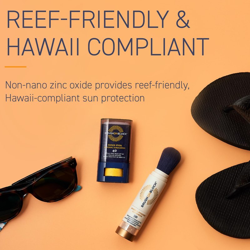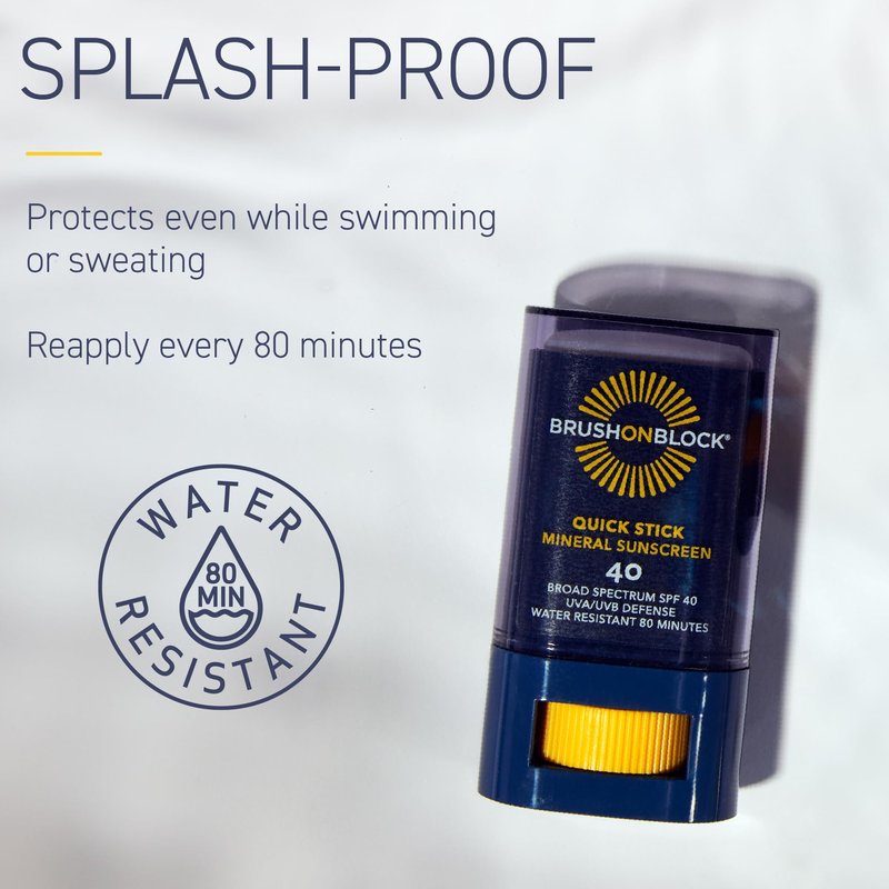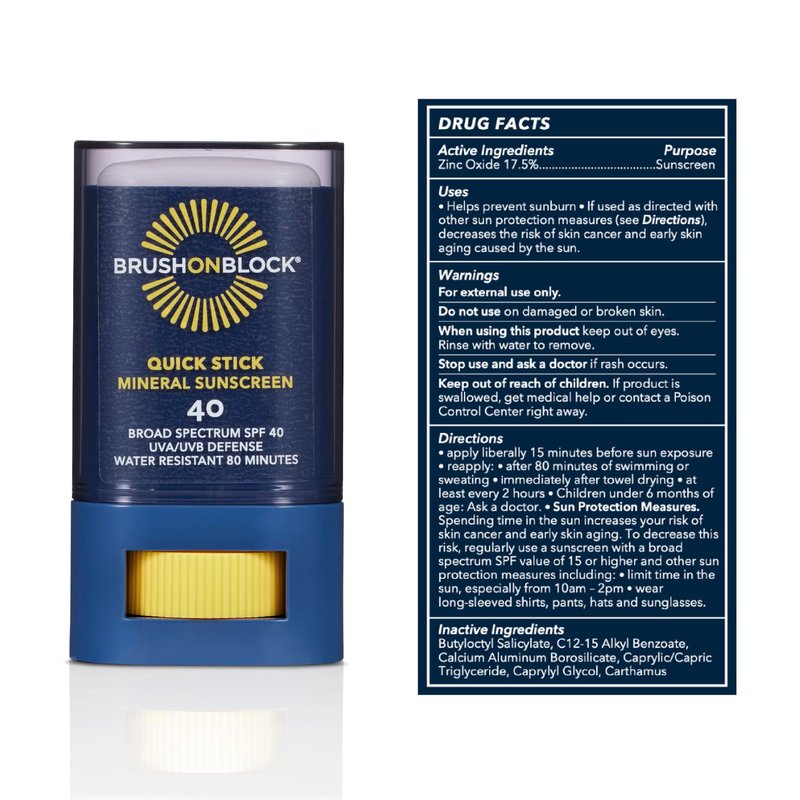 Brush On Block Quick Stick SPF 40, Mineral Sunscreen Stick, UVA/UVB Protection, Water Resistant, Hawaii Compliant, Reef Friendly, 0.63 oz
