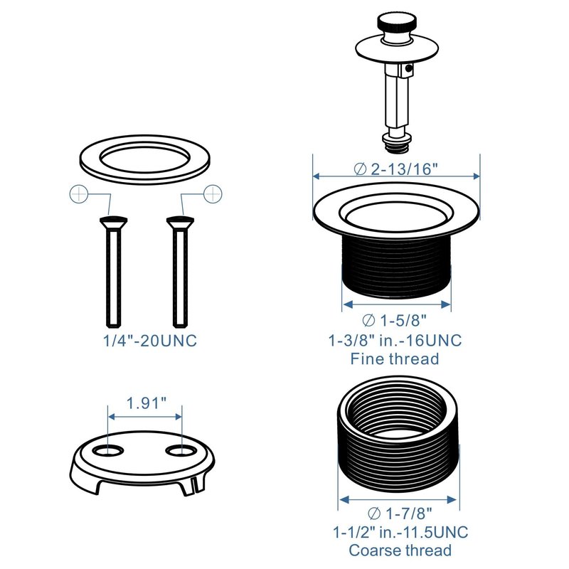 - WHAT YOU GET : Brushed tub drain, thread adapter bushing(1-1/2 in. NPSM x 1-3/8 in. NPSM ) ,washer,2-hole overflow faceplate, Two pieces 1/4 in.-20 UNC faceplate screws.