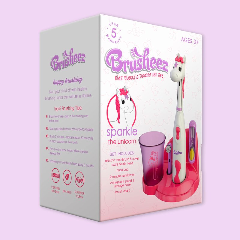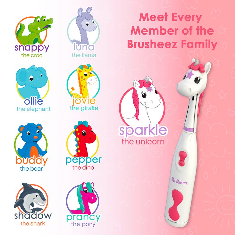 Brusheez® Kids’ Electric Toothbrush Set - Safe & Effective for Ages 3+ - Parent Tested & Approved with Gentle Bristles, 2 Brush Heads, Rinse Cup, 2-Minute Timer, & Storage Base (Sparkle The Unicorn)