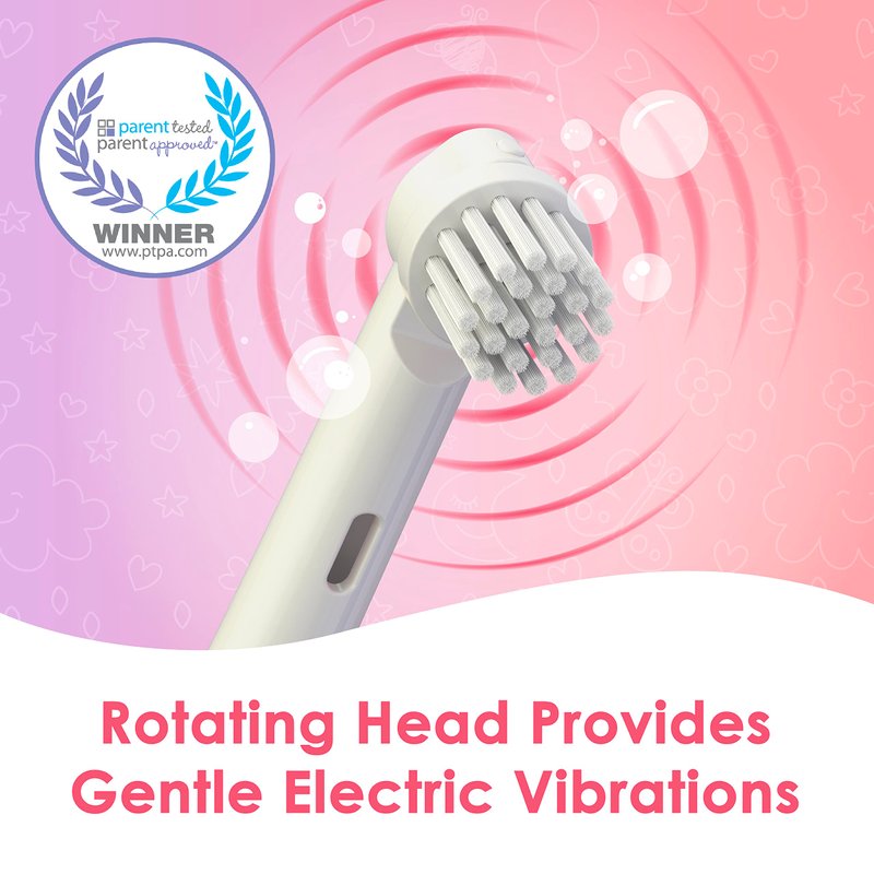 Electric Toothbrush for Kids: Soft head rotates at 4000 rpm for a safe and effective brushing experience. Powered by 2 AA batteries (not included).