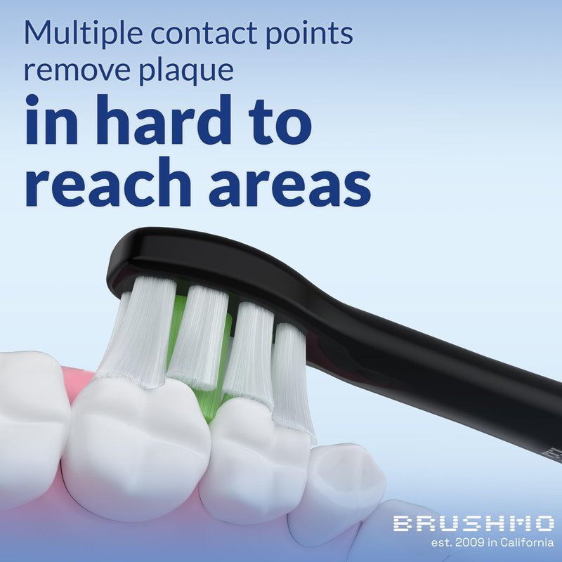 - FEEL THE BRUSHMO DIFFERENCE: The specially designed toothbrush head uses a unique combination of bristle placement and end-rounded bristles to provide an effective, yet comfortable brushing experience.